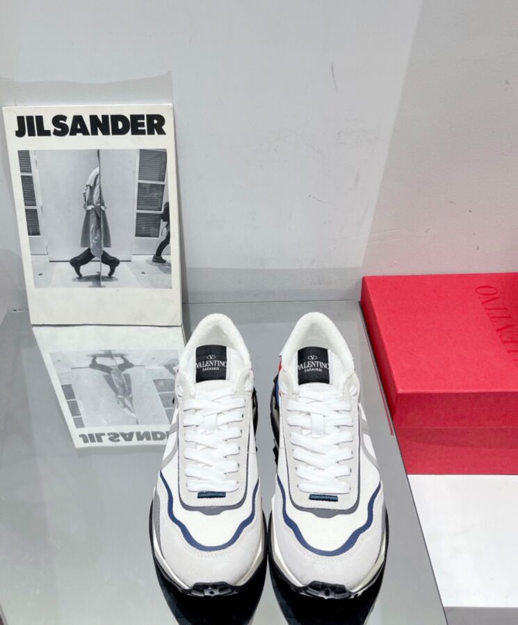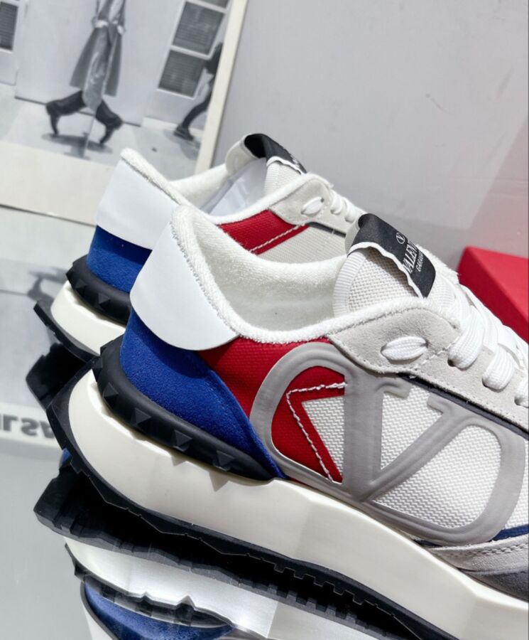 Valentino Garavani Netrunner Fabric and Suede Sneaker VLogo Signature detail Midsole with embossed Valentino Garavani logo and rubber stud detail on back Rubber tread with maxi stud design