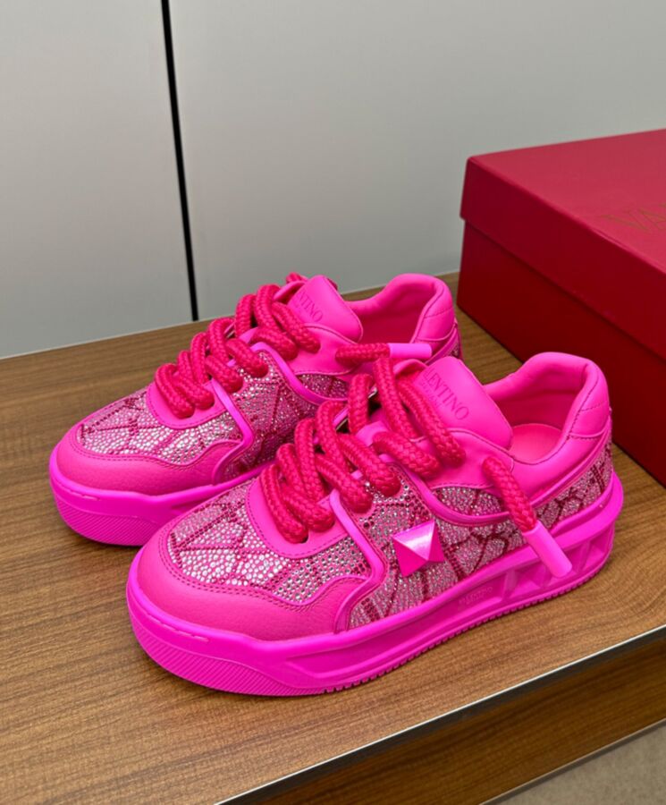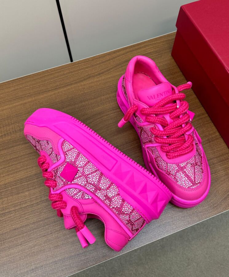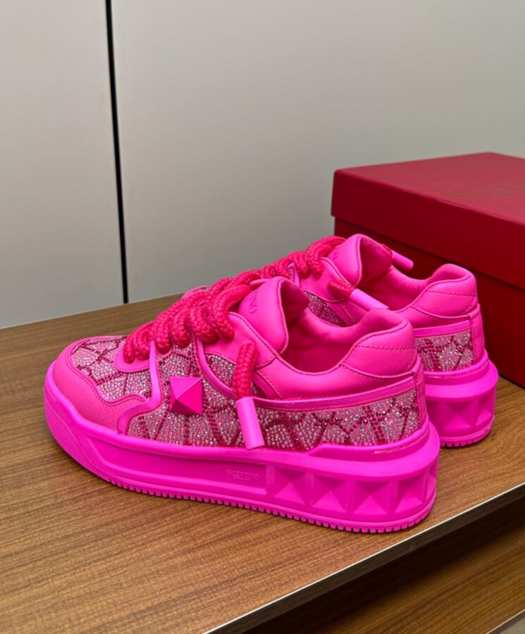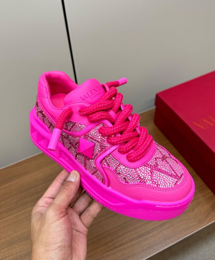 Valentino Garavani One Stud XL women’s low-top sneaker with Toile Iconographe crystal appliques on nappa leather