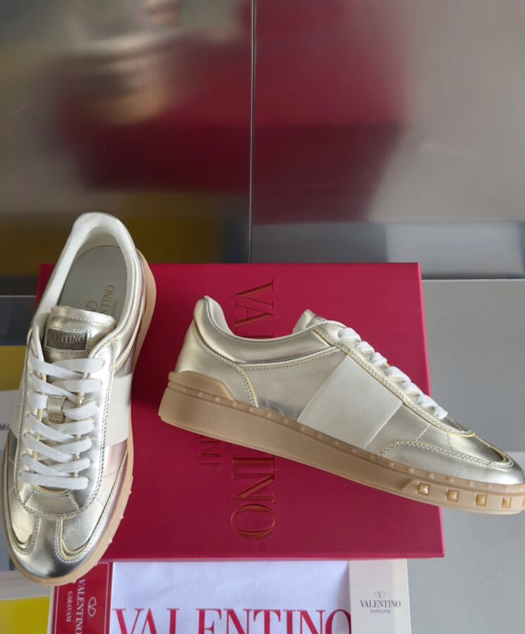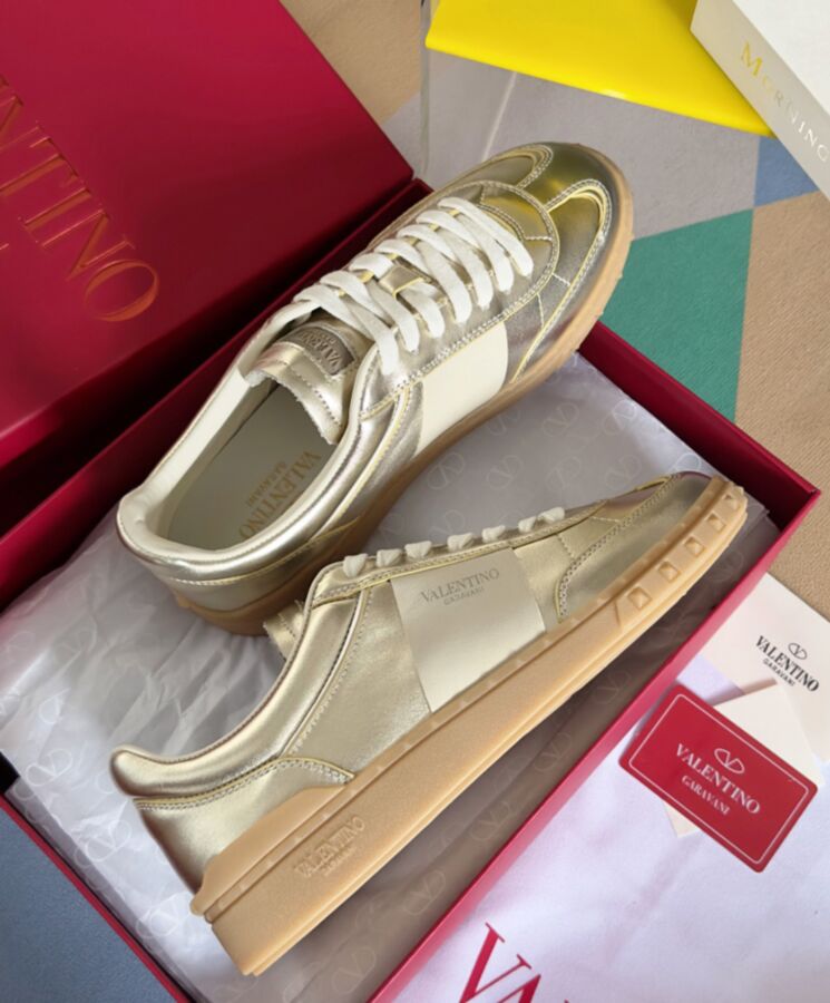 Valentino Garavani Upvillage sneaker in laminated calfskin leather Nappa calfskin band Valentino Garavani logo screen-printed on band and tongue Rubber sole with stud detail