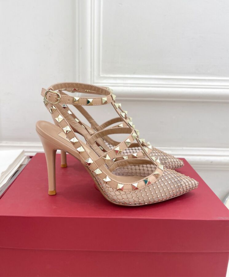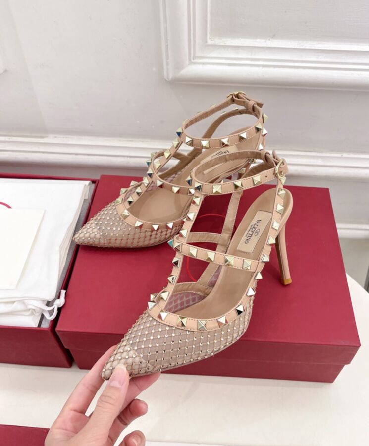 Valentino Womens Rockstud Mesh Pump With Crystals And Straps 100MM