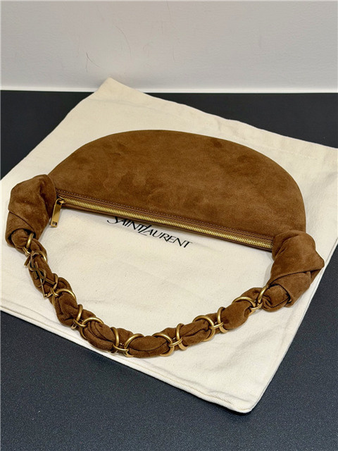 THE MINI VERSION OF THE AMALIA HOBO BAG IN SUEDE, FEATURING A WOVEN CASSANDRE JEWELRY CHAIN STRAP.