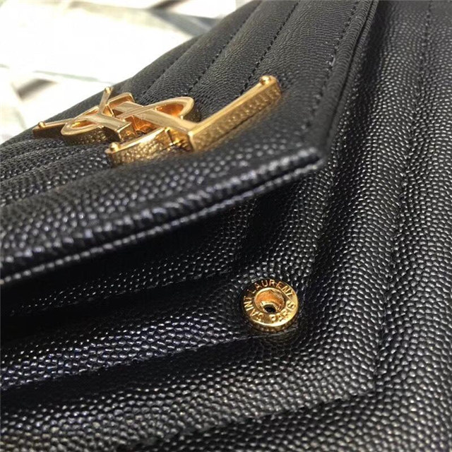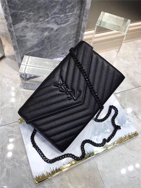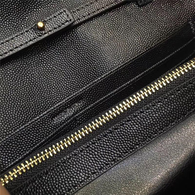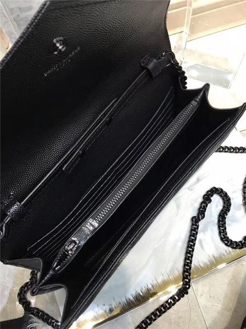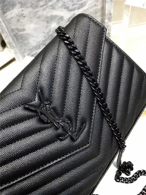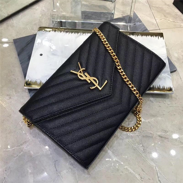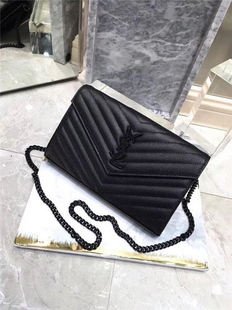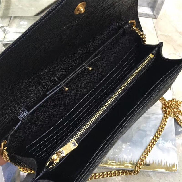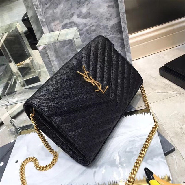 CLASSIC MONOGRAM SAINT LAURENT FLAP FRONT WALLET WITH REMOVABLE METAL CHAIN, METAL INTERLOCKING YSL SIGNATURE AND MATELASSé STITCHING.