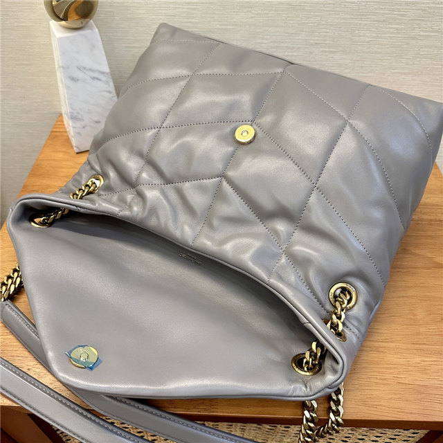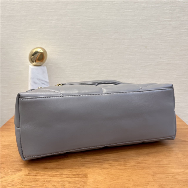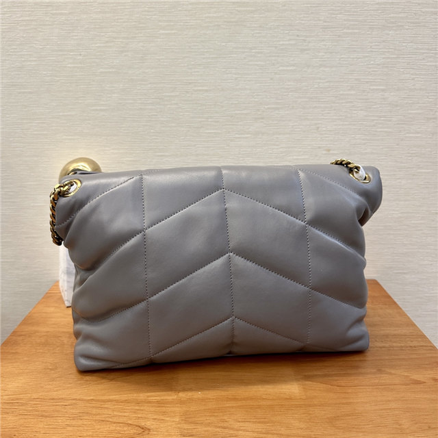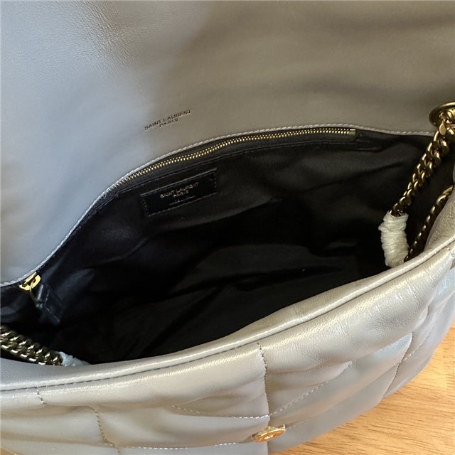 THE ICONIC LOULOU IN PUFFER VERSION, WITH CHEVRON QUILT OVERSTITCHING.