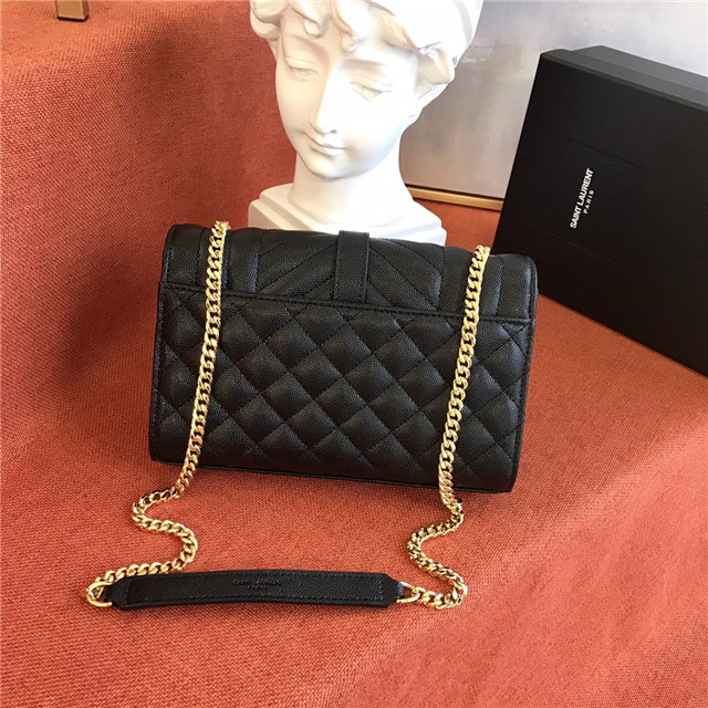 ENVELOPE FLAP BAG IN GRAIN DE POUDRE EMBOSSED LEATHER, FEATURING CHEVRON AND DIAMOND QUILT OVERSTITCHING.