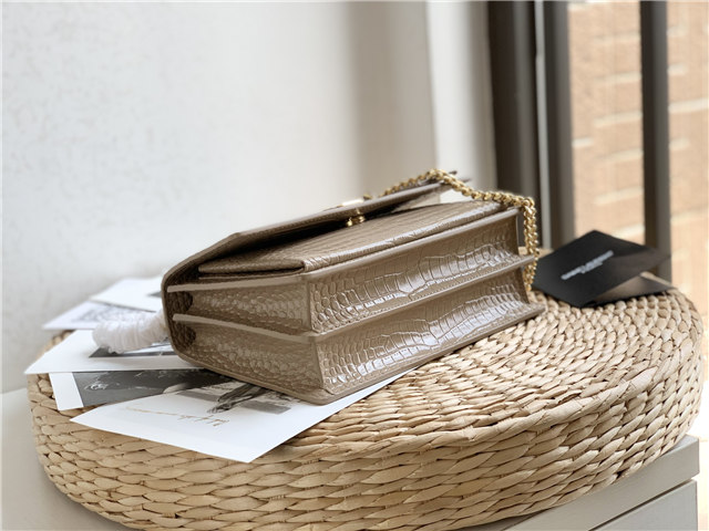 YSL Sunset Medium 442906 Beige Crocodile Embossed LeatherGold