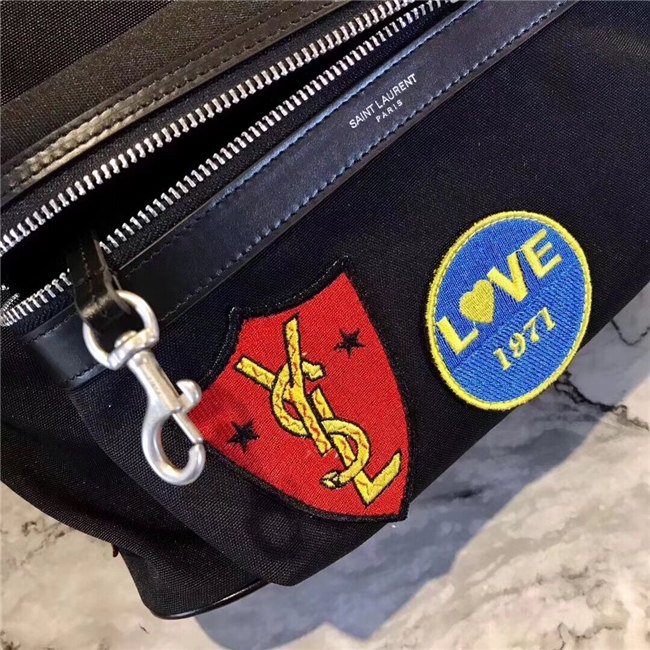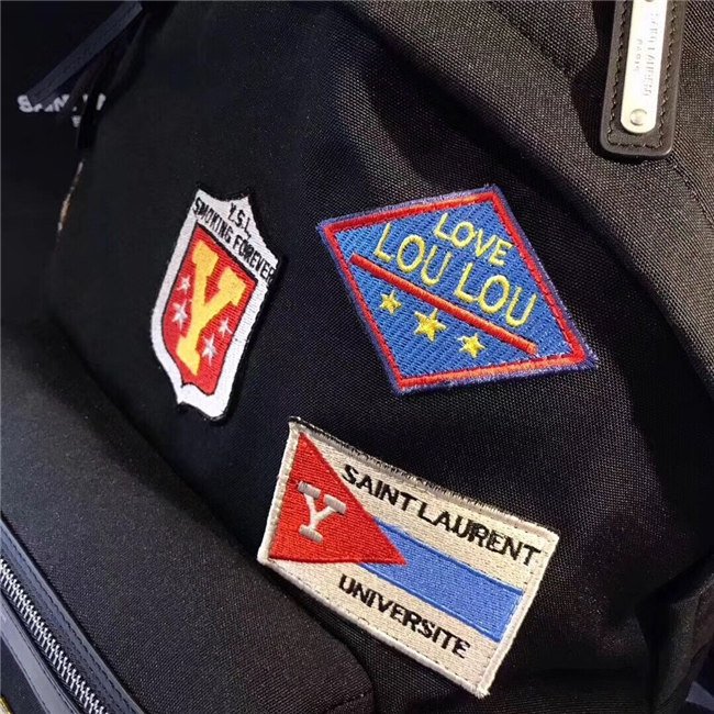 Yves Saint Laurent City Backpack With Patches Black Twill And Leather