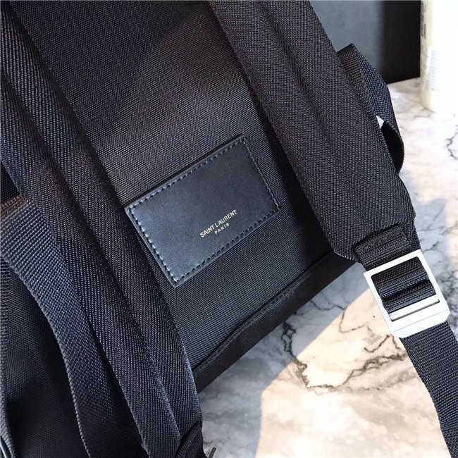 Yves Saint Laurent City Backpack With Pocket Patch Black Twill And Leather