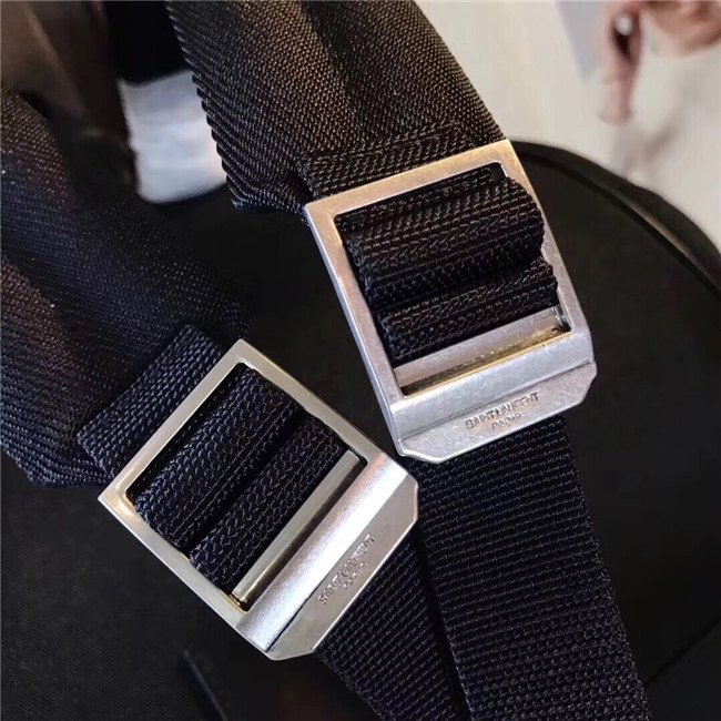 Yves Saint Laurent City Backpack With Pocket Patch Black Twill And Leather