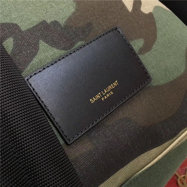 Yves Saint Laurent Classic City Backpack Khaki Cotton Gabardine Camouflage And Black Leather