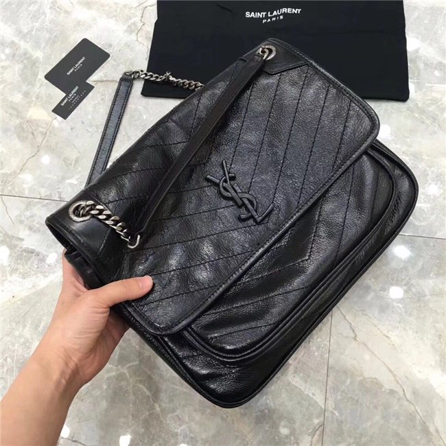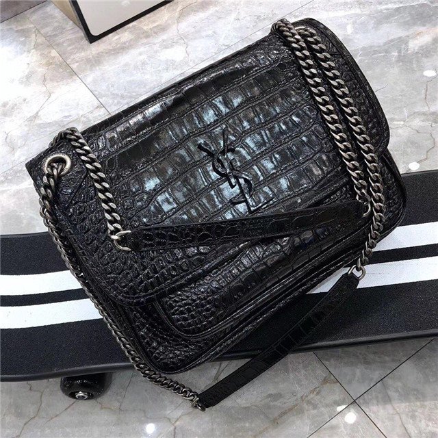 YSL Medium Niki Chain Bag Black Crocodile Patent