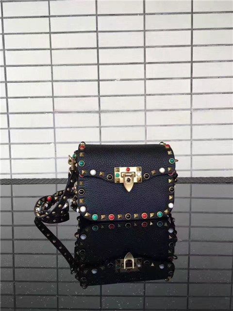 Valentino Rockstud small Black with multicolored cabochons